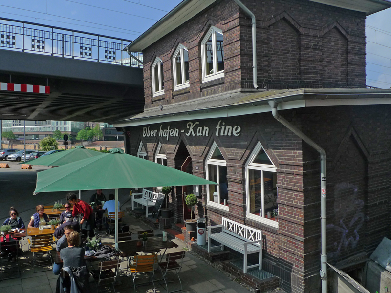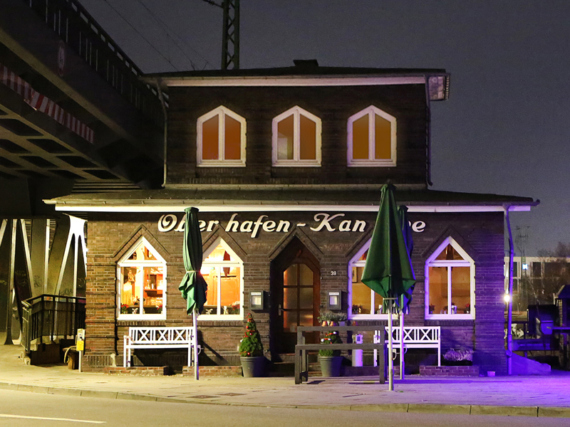 Wirklich schief steht sie da, unsere Oberhafen-Kantine. Und die Schräglage sieht man nicht nur von Außen sondern spürt sie auch Innen. Manch einer sagt, dass es ihm wird, wie auf einem Ozeandampfer zu hoher See. Aber es gibt nur ganz Wenige, bei denen wir dies nicht mit einem Schnäpschen hin gebogen bekommen hätten. Das, zusammen mit dem guten Essen ist für viele schon Grund genug, bei uns eine schöne Zeit umgeben von Freunden oder Kollegen zu verbringen.